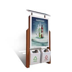 Cubo de basura de metal de calle con pantalla de visualización de publicidad cubo de basura de acero galvanizado